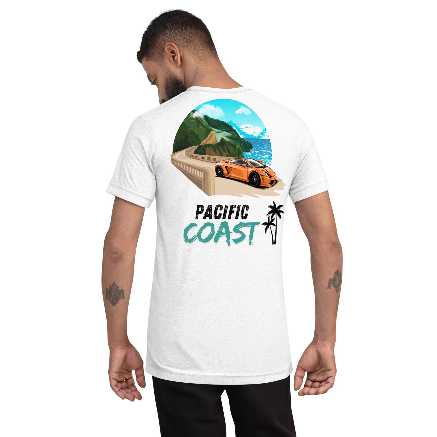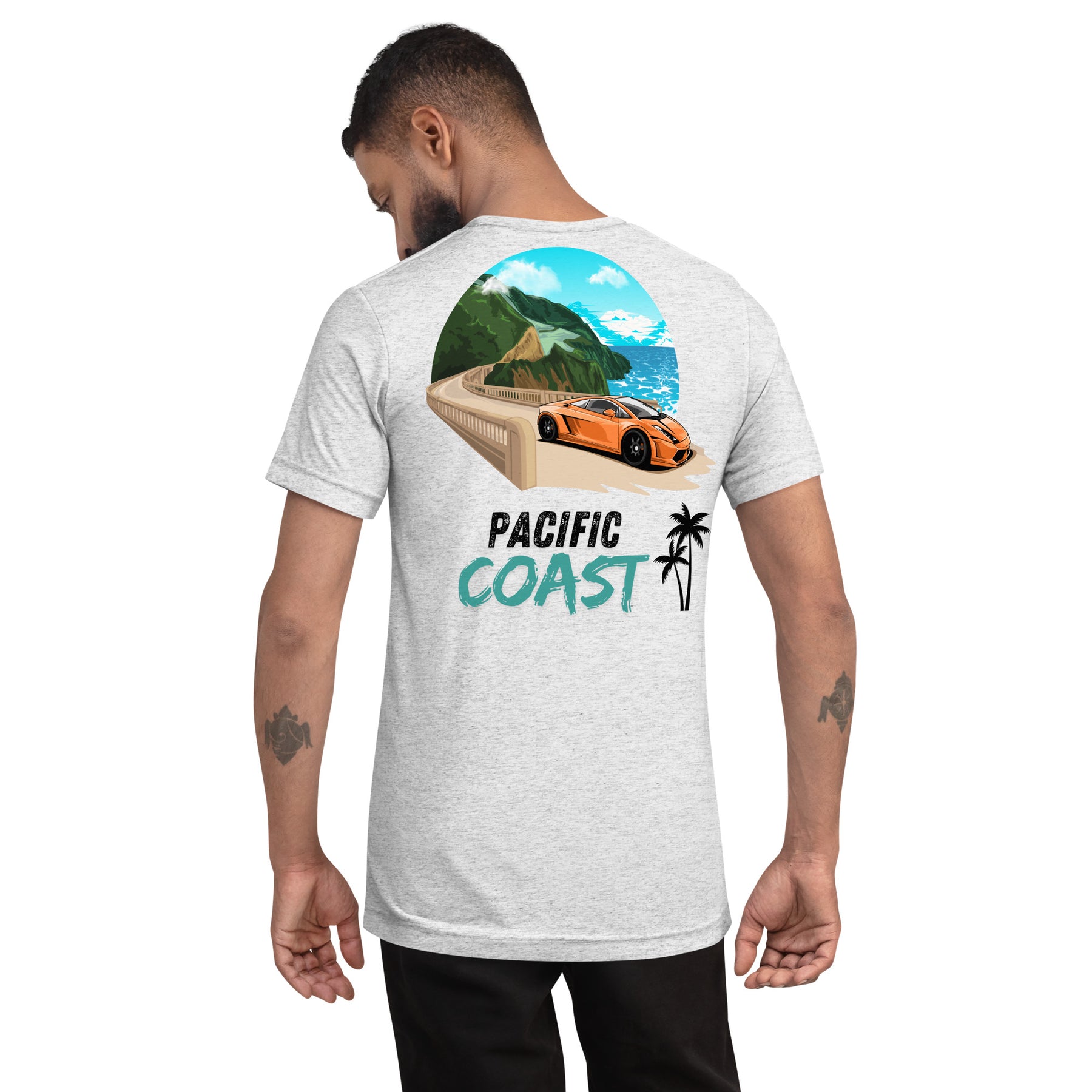 Hit the open road in style with the "Pacific Coast Cruisin" T-shirt, a bold homage to the freedom and exhilaration of cruising along the iconic Pacific Coast Highway. Featuring a stunning rear graphic of a Lamborghini Gallardo effortlessly gliding past breathtaking ocean views, this design captures the spirit of speed, luxury, and adventure.